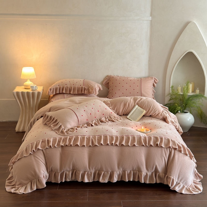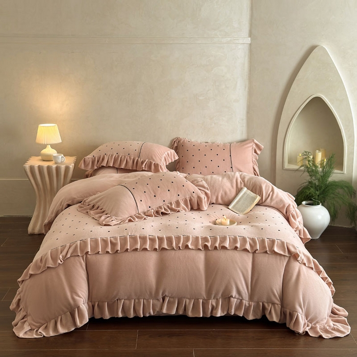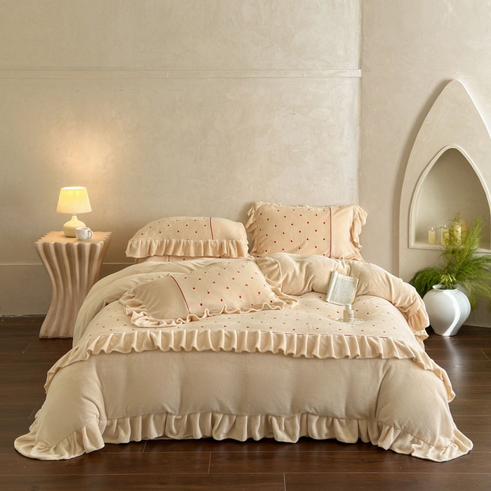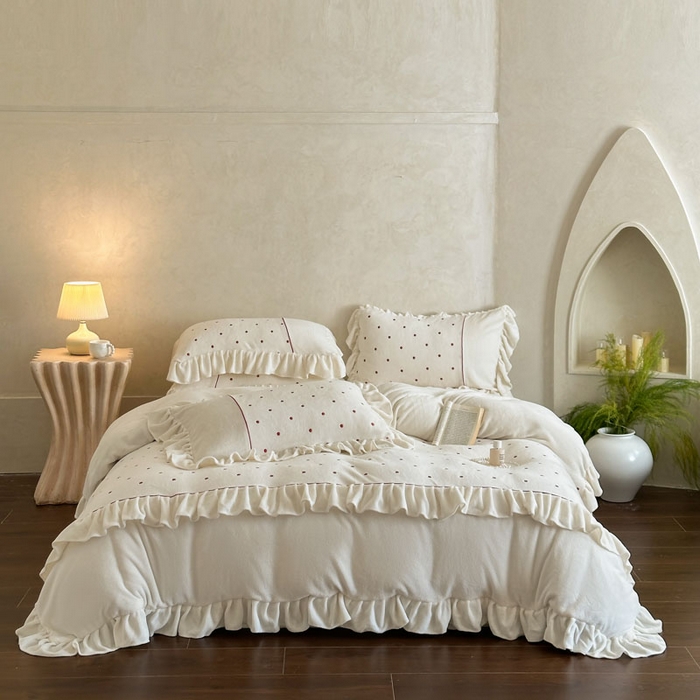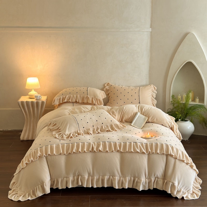 当前位置: 豪美鑫> 产品中心 > 2025新款牛奶绒波点刺绣花边四件套-波尔卡系列